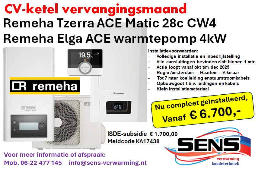 SENS verwarming & koudetechniek - Remeha specialist voor cv-ketels warmtepompen & zonneboilers in Noord- en Zuid-Holland.